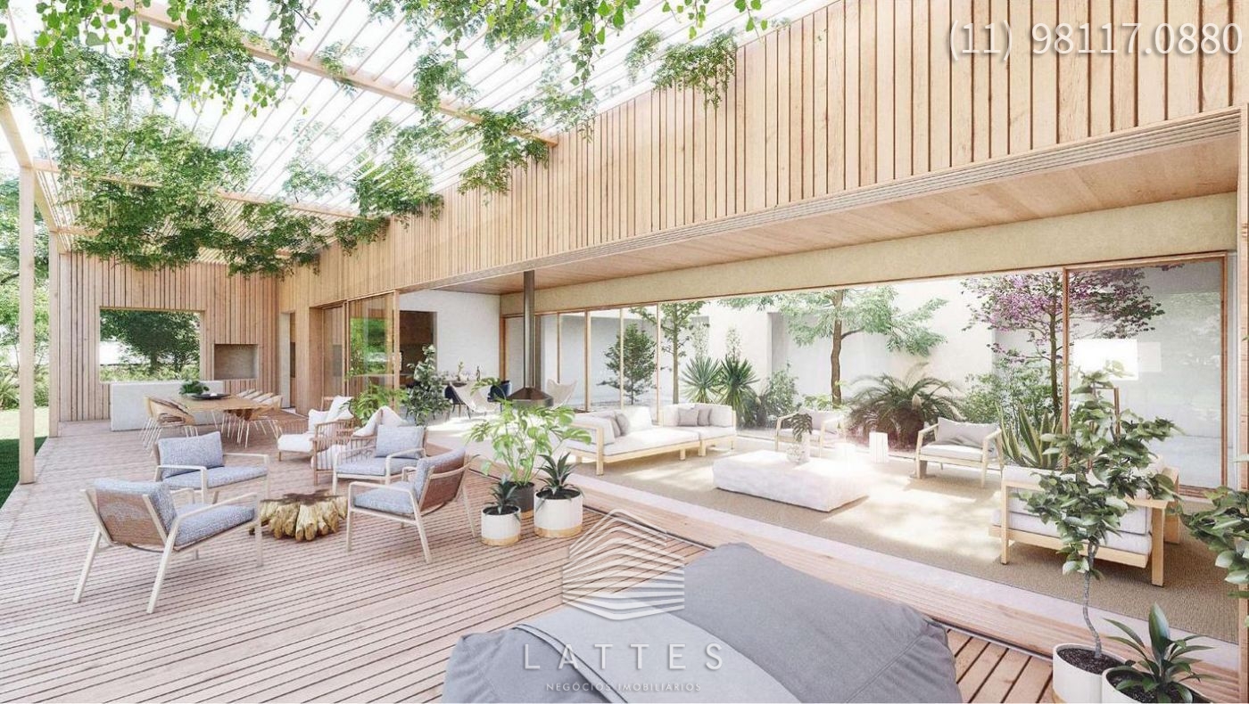 Casa OITO - Projeto desenvolvido pelo escritório de Arquitetura francês Triptyque (Paris e São Paulo) Arquiteto Greg Bousquet, responsável por inúmeros projetos contemporâneos - No terreno de 3.383,01 m² a casa foi desenhada com 5 Suítes (a Master com banheira) cada uma com Terraço / Deck - O Lounge com Jardim descoberto interno faz a integração da casa, divide a área social das Suítes - Sala de Estar com lareira e Sala de Jantar se conectam ao Terraço descoberto com pergolados. Na área Gourmet (fácil acesso à ampla Cozinha) o pergolado é preparado para receber cobertura em vidro ou policarbonato - Piscina com prainha, muito charmosa com previsão para aquecimento (infraestrutura elétrica ou gás) - Super "ANEXO" com mais 73 m² Composto de Sala (multi-uso), uma segunda opção de Área Gourmet, Sauna e Vestiário (veja planta ao lado). Observação: No "ANEXO" Decks ao redor e cobertura pergolada vazada - Para curtir à noite um charmoso e agradável Rooftop para 3 ambientes (Lounge, Fire Pit e Apoio com pia para churrasco), decks em madeira e guardas-corpo metálicos - Lavanderia - Garagem Pergolada para 3 veículos - Depósitos externo e interno - Dependências de funcionários
