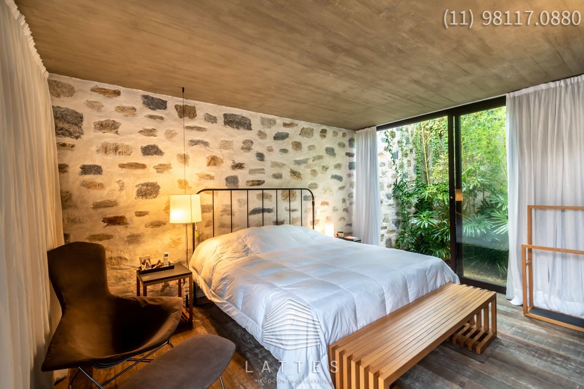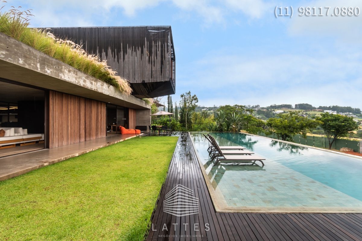 Projeto desenvolvido pelo detalhista Arquiteto Marcelo Couto e o Paisagismo desenvolvido por Rodrigo Oliveira (contempla Irrigação automático com sensor de chuva) - No terreno com 2.700 m², em cota alta para preservar a vista, foi implantada essa Casa contemporânea porém, pelos espaços e jardins integrados que oferece, atemporal - São 7 suítes (3 no térreo e 4 no piso superior). Completas com armários e camas feitos sob medida. Os Brises com abertura através de controle remoto e os Ar condicionados embutidos - Sala de Jantar, Home Theater, Sala de Leitura com Piano e Lareira e no andar superior Escritório com bancada. Todos com Pisos em madeira de demolição, os Brises e a Caixilharia do teto ao chão, proporcionam que o paisagismo entre em todos os ambientes da casa, podendo contemplar o skyline e o pôr-do-sol - O Espaço Gourmet com Churrasqueira a gás, Forno a Lenha, Maquina de Gelo, Cervejeira, Adegas, e Freezers dispões de mesa muito espaçosa para 20 lugares, junto à Mata interna com espelho d'água - Sauna em pedra hijau com Jardim interno, com duchas e área de repouso - Cozinha com jardim interno, copa, despensa , cristaleira embutida, armários sob medida e utensílios de nível profissional (fogão, fornos, lavadora) - Piscina de 16 m x 5 m com raia feita em pedra hijau - Um super Roof Top com linda vista composto de Deck/Solarium , Firepit com poltronas e Jardim suspenso - No subsolo Salão de jogos com espaço extra com 150 m², 2 Vestiários - Área para funcionários com 2 dórmitorios, banheiro, sala e pequena cozinha