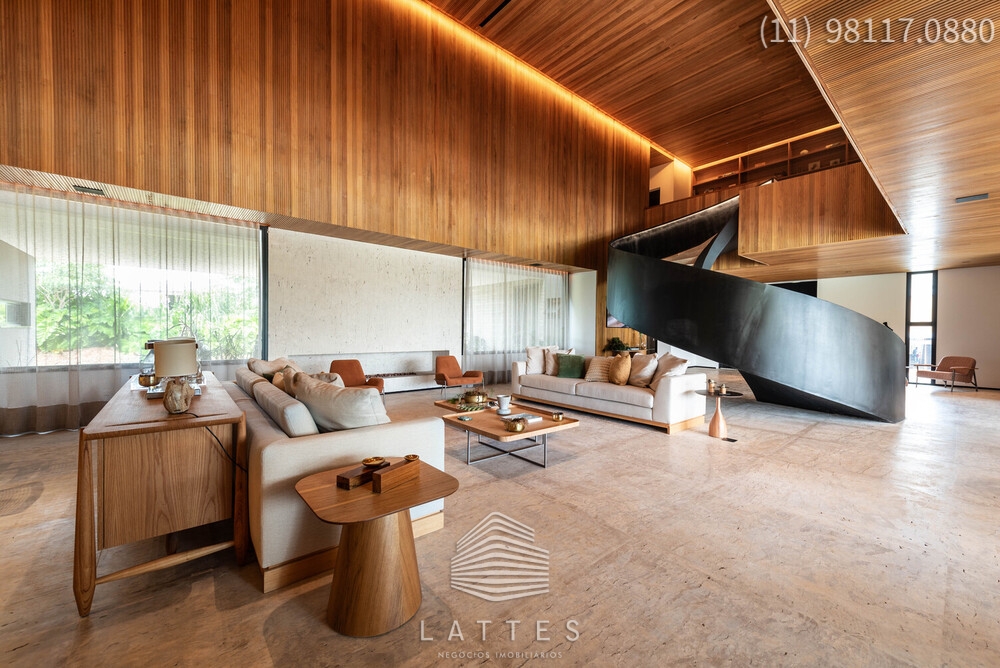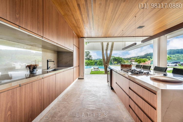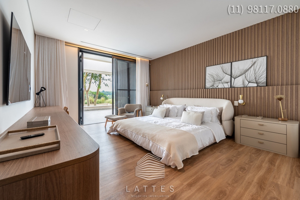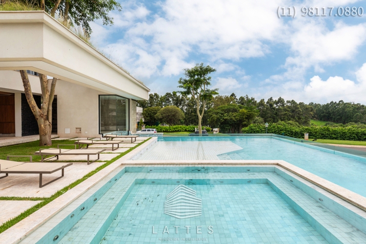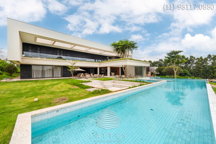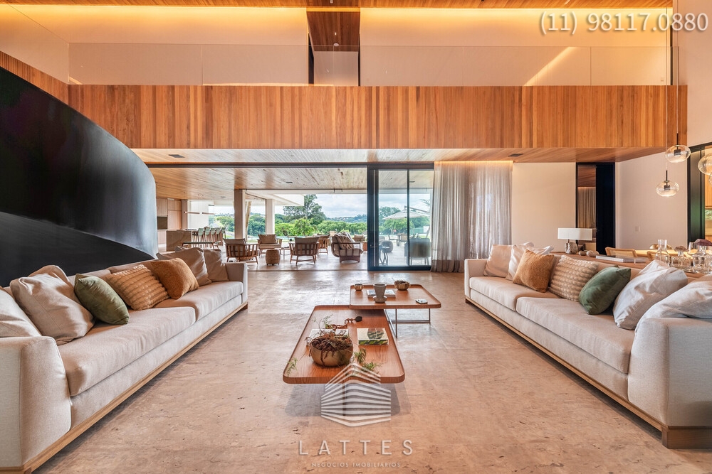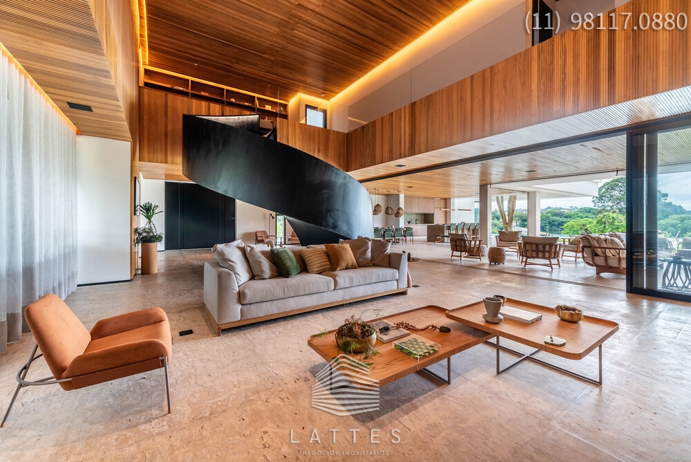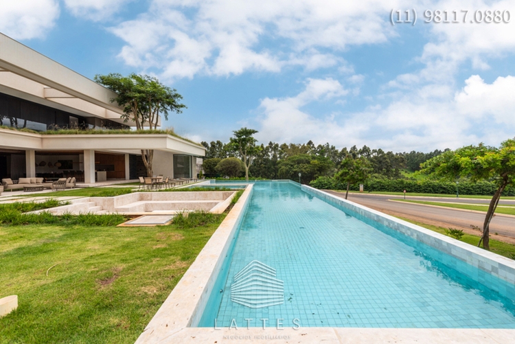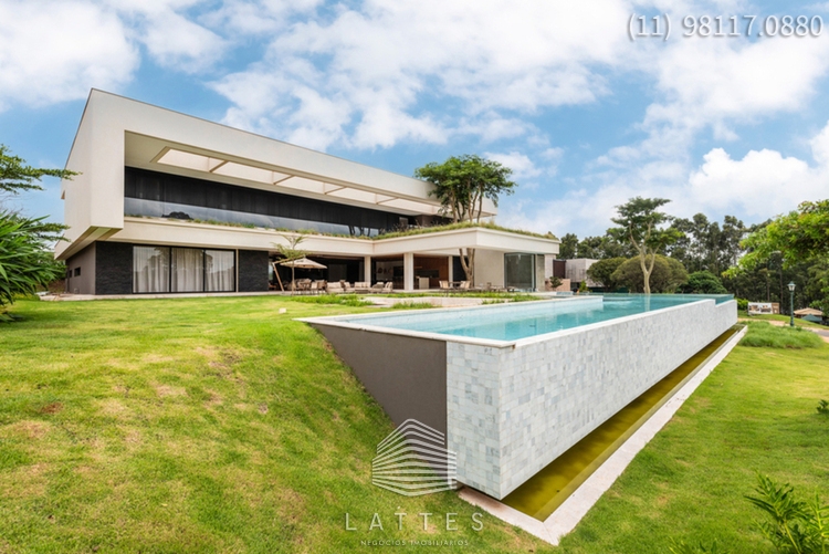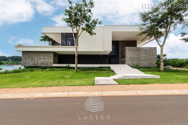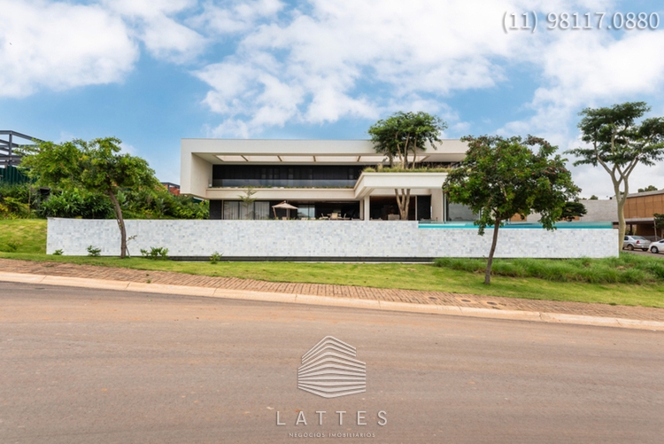 Casa moderna implantada em terreno com 2.330 m² - Projeto desenvolvido pelo Escritório de Arquitetura de Dalber Aguero e Paisagismo de Alexandre Lico. Decorada pelo escritório de Interiores da Arquiteta Cassiana Miranda - São 6 Suítes, a Master com closet e banheiro com vista para o Lago - Living com lareira e pé direito duplo, Sala de Jantar, Escritório, Sala Íntima, Sala de Cinema, Adega e Cozinha espaçosa e completa - Amplo Terraço com Lounge e Área Gourmet junto à Piscina, Jacuzzi, Sauna e Pit Fire - 2 dormitórios para funcionários - 3 vagas cobertas para automóveis e Depósito