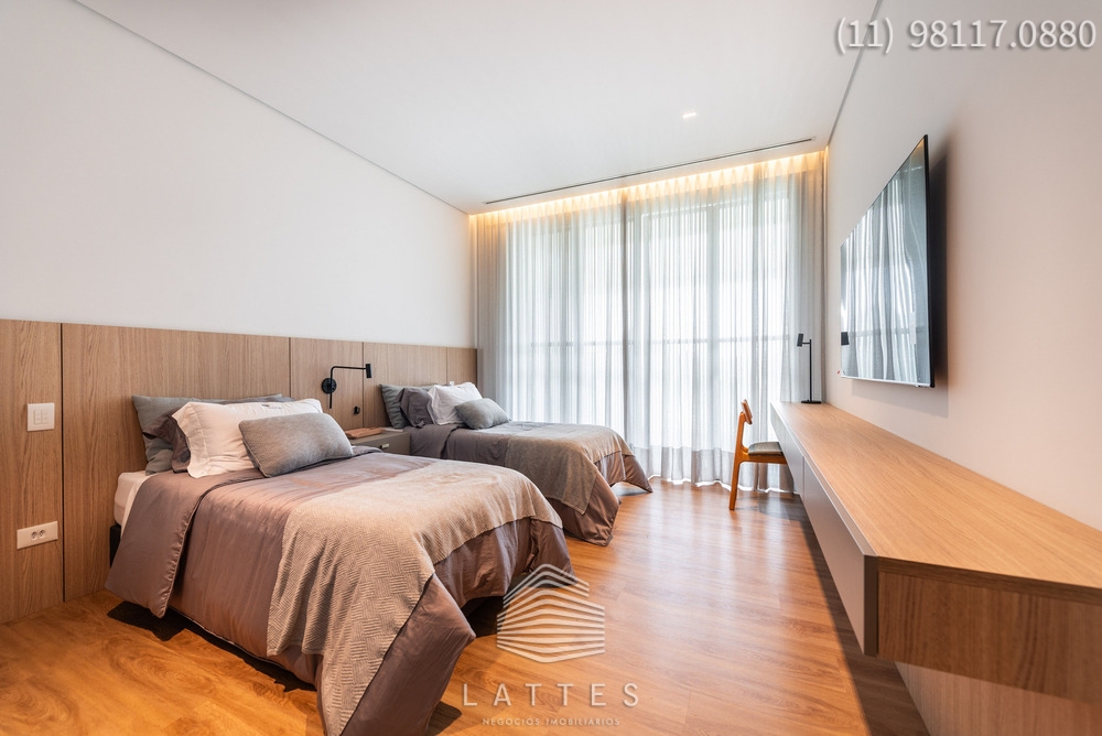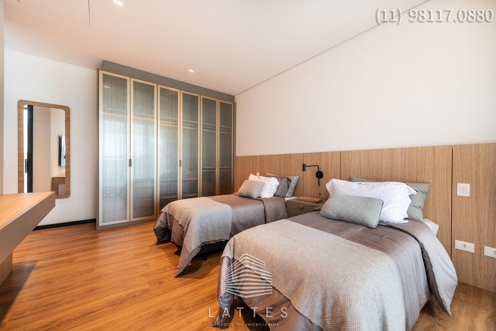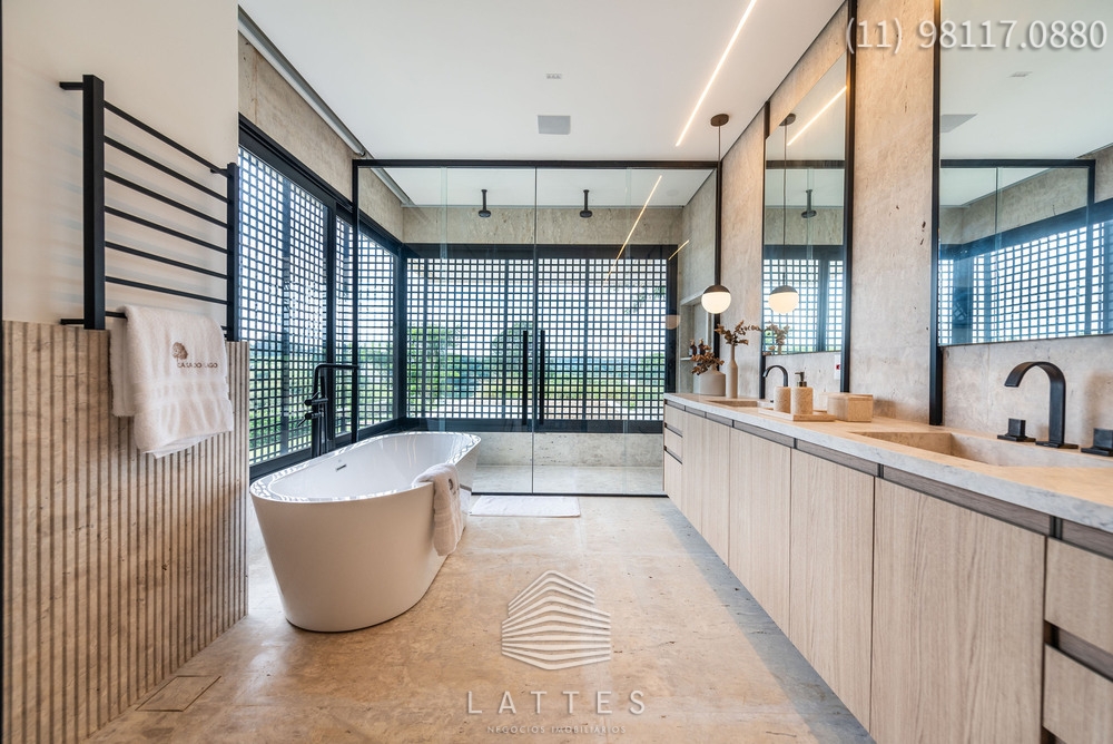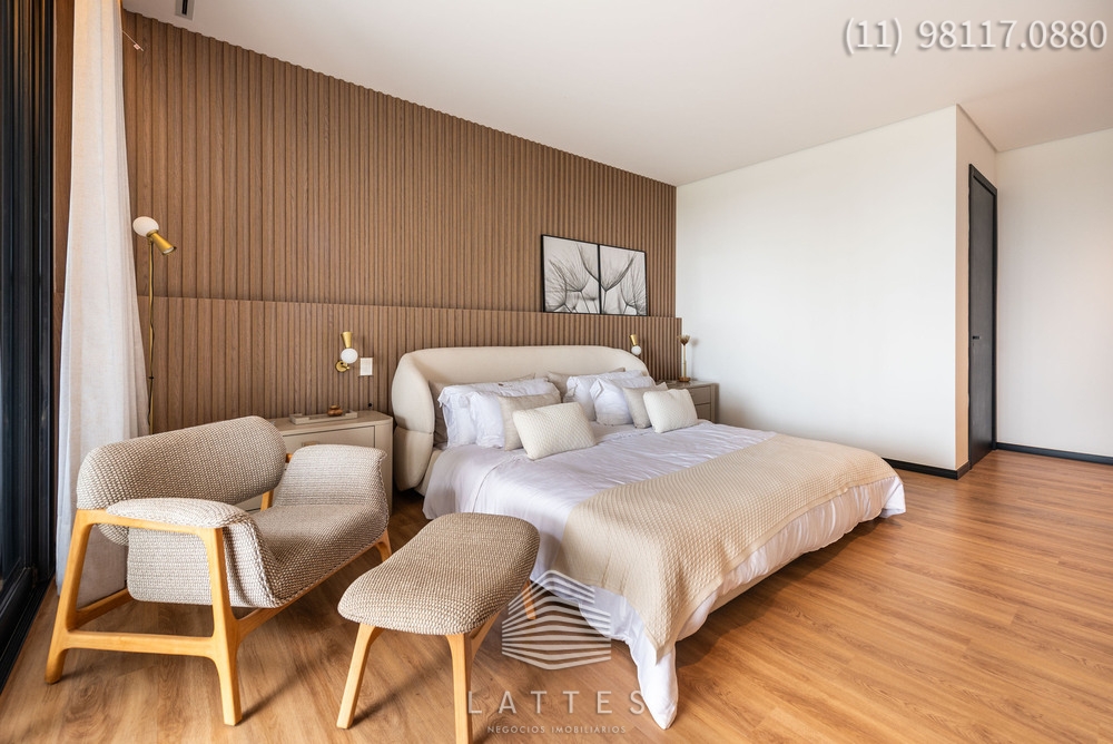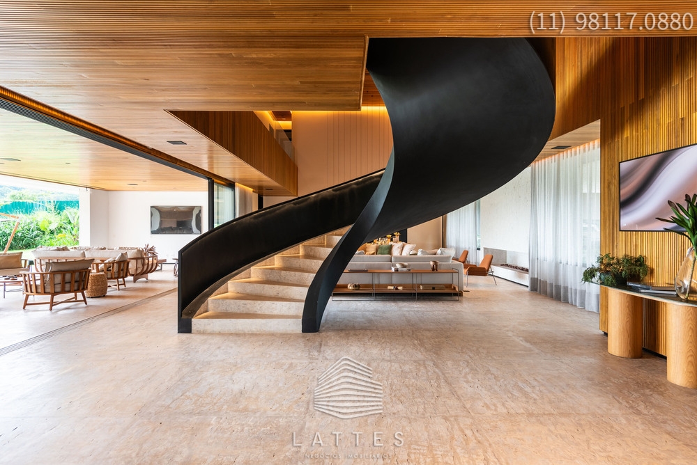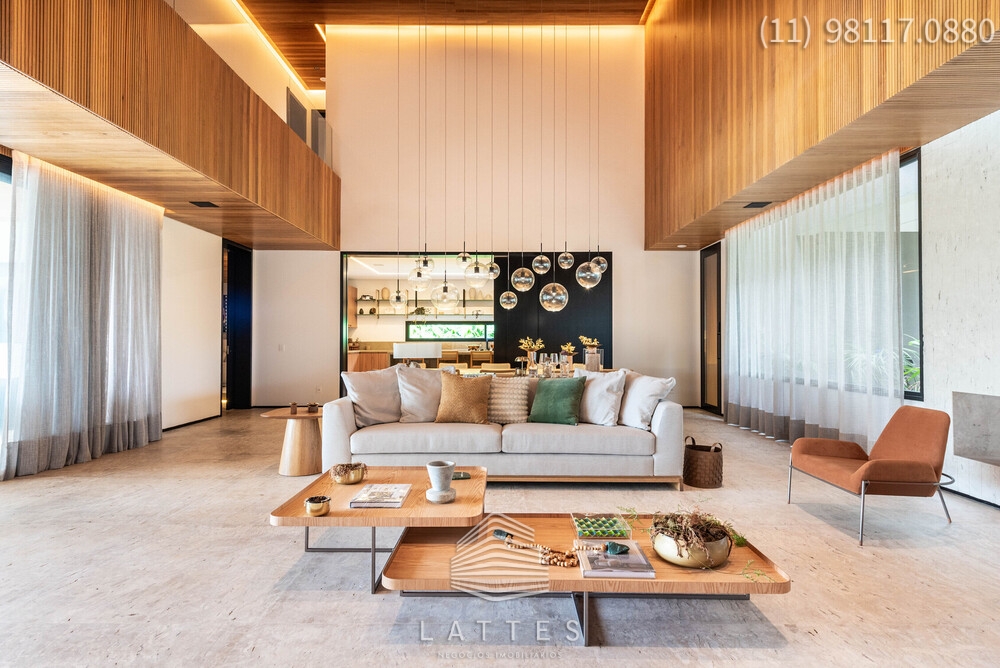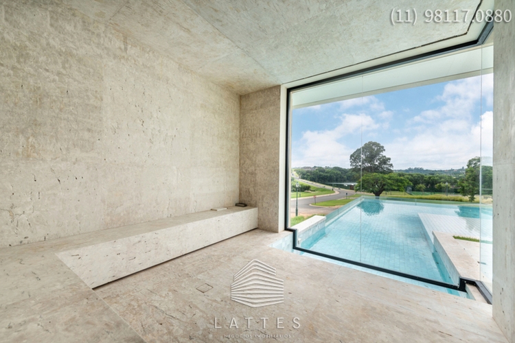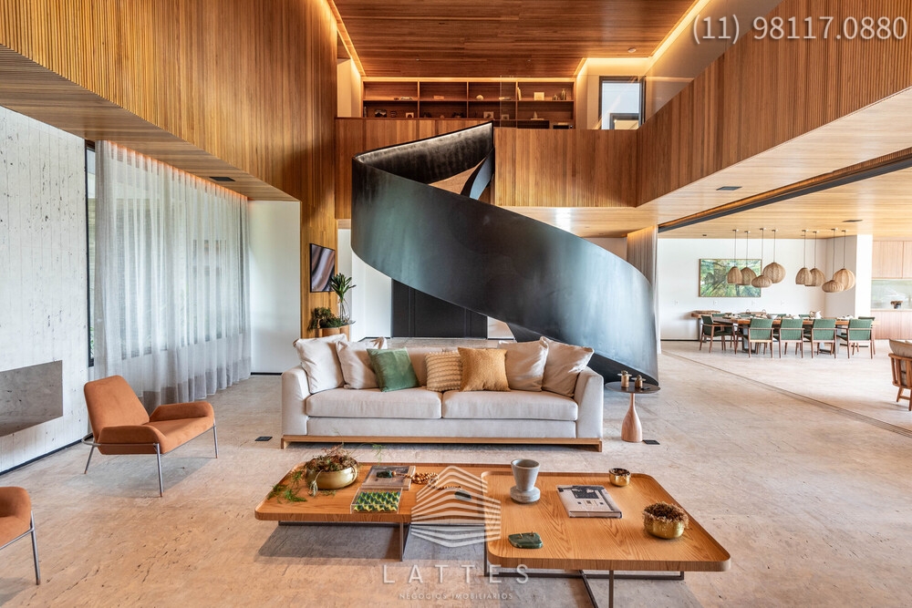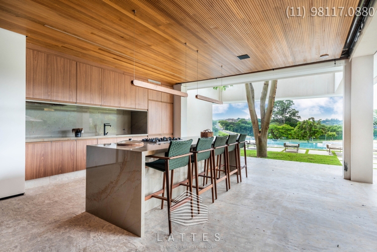 Casa moderna implantada em terreno com 2.330 m² - Projeto desenvolvido pelo Escritório de Arquitetura de Dalber Aguero e Paisagismo de Alexandre Lico. Decorada pelo escritório de Interiores da Arquiteta Cassiana Miranda - São 6 Suítes, a Master com closet e banheiro com vista para o Lago - Living com lareira e pé direito duplo, Sala de Jantar, Escritório, Sala Íntima, Sala de Cinema, Adega e Cozinha espaçosa e completa - Amplo Terraço com Lounge e Área Gourmet junto à Piscina, Jacuzzi, Sauna e Pit Fire - 2 dormitórios para funcionários - 3 vagas cobertas para automóveis e Depósito