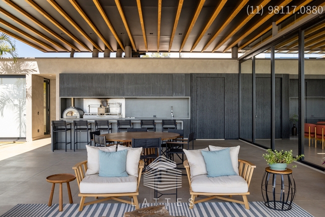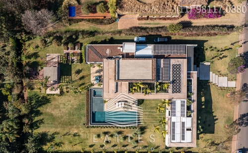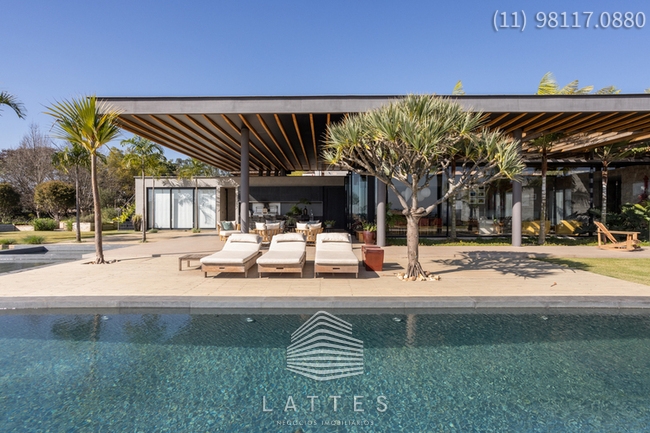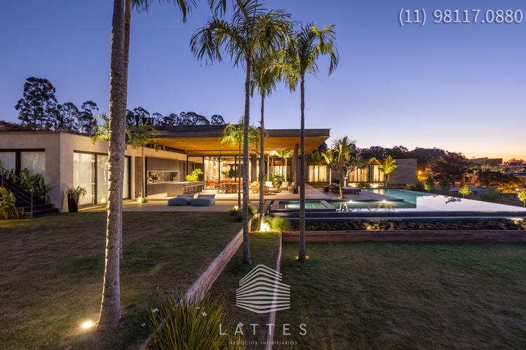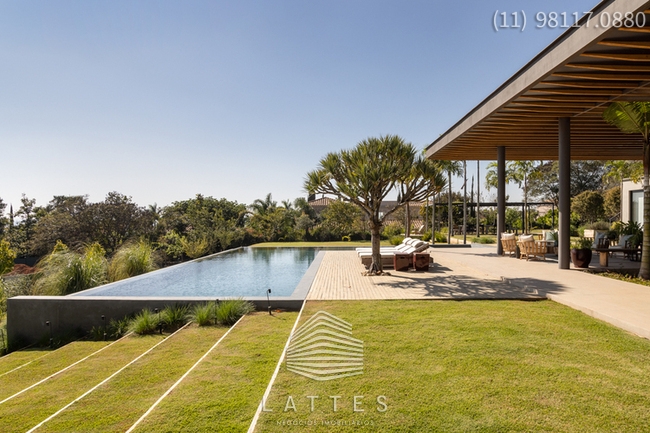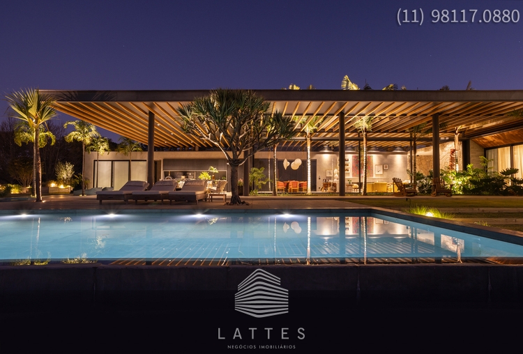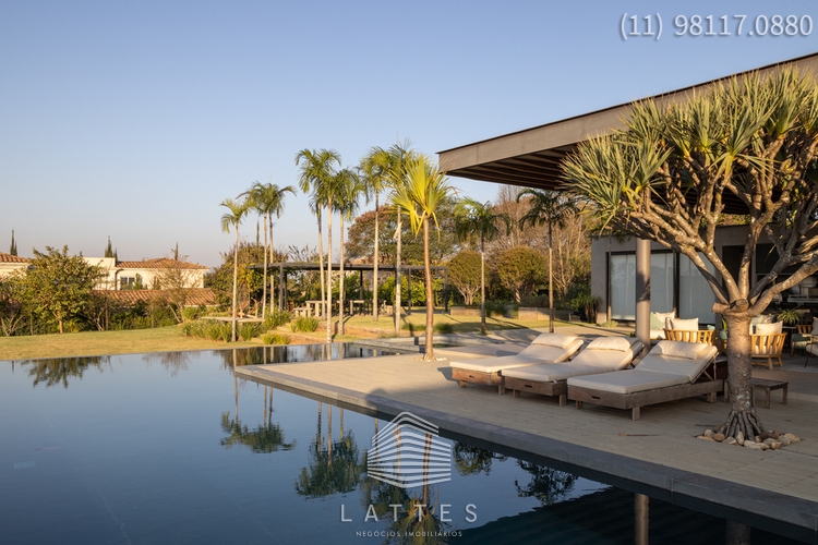Em terreno com 3.380 m², em cota alta do Empreendimento, o Escritório do Arquiteto Lucas Padovani desenvolveu uma Casa Térrea com 4 / 5 Suítes - Living com Lareira e Sala de Jantar conjugadas - Home Theater com banheiro completo podendo se transformar na 5ª Suíte - Lavabo - Ampla Varanda com Lounge coberto e Área Gourmet equipada - Piscina (aquecimento por energia solar) com Prainha e SPA - Anexo com Gazebo e Espaço Pit Fire - Paisagismo executado pelo Escritório de Alexandre Furcolin - Horta - Dependência para funcionários - 2 Vagas Cobertas para auto e outra para carro de Golfe